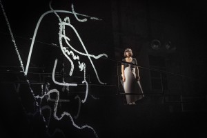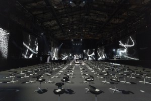 Our multi projection software for D•I•E created a tight link between the 28 channel audio stream from the orchestra and the realtime particle system projected onto 10 large scale holo-gazes. A perfect interplay of an advanced audio analysis created in Ableton Live and audio-reactive visuals within our show control software created in TouchDesigner.